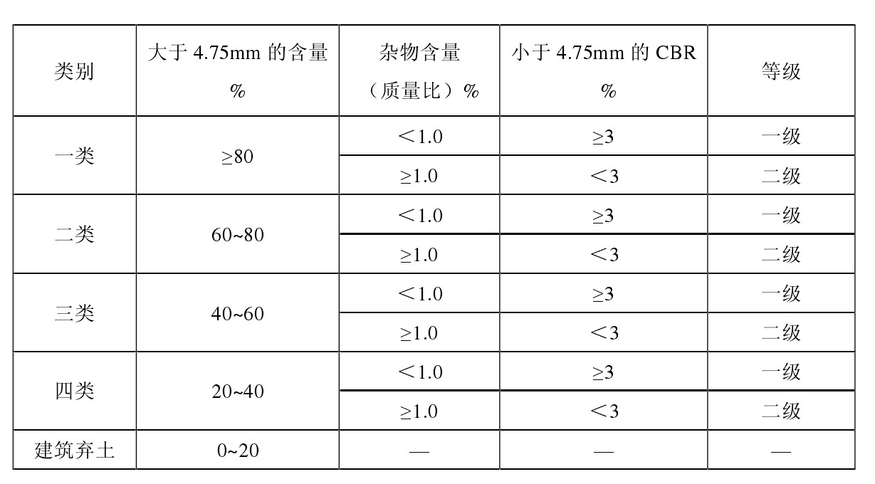 其中,對于可利用建筑垃圾分成的四個類別中的二級建筑垃圾,不得直接將其應(yīng)用于路基填筑,確需使用時須對其采用水泥等固化材料進行加固處理,處理后必須經(jīng)過試驗檢驗合格后方可進行使用。